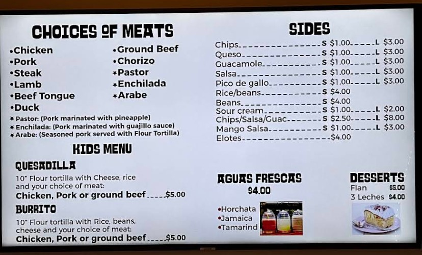 Delicious fresh food. Stopped here for lunch between games at the sportsplex. Enjoyed the pork tacos and a chicken burrito. Staff very friendly and polite. Would definitely come here again.
